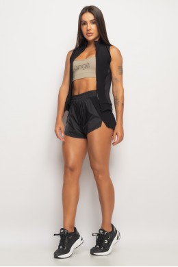 Veste suuuper bem! Poliamida lisinha, confortável de usar, um mimo. Essa peça pessoalmente é um nude acinzentado, muito lindo!
